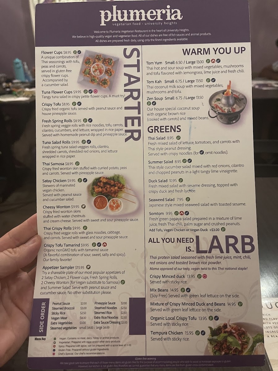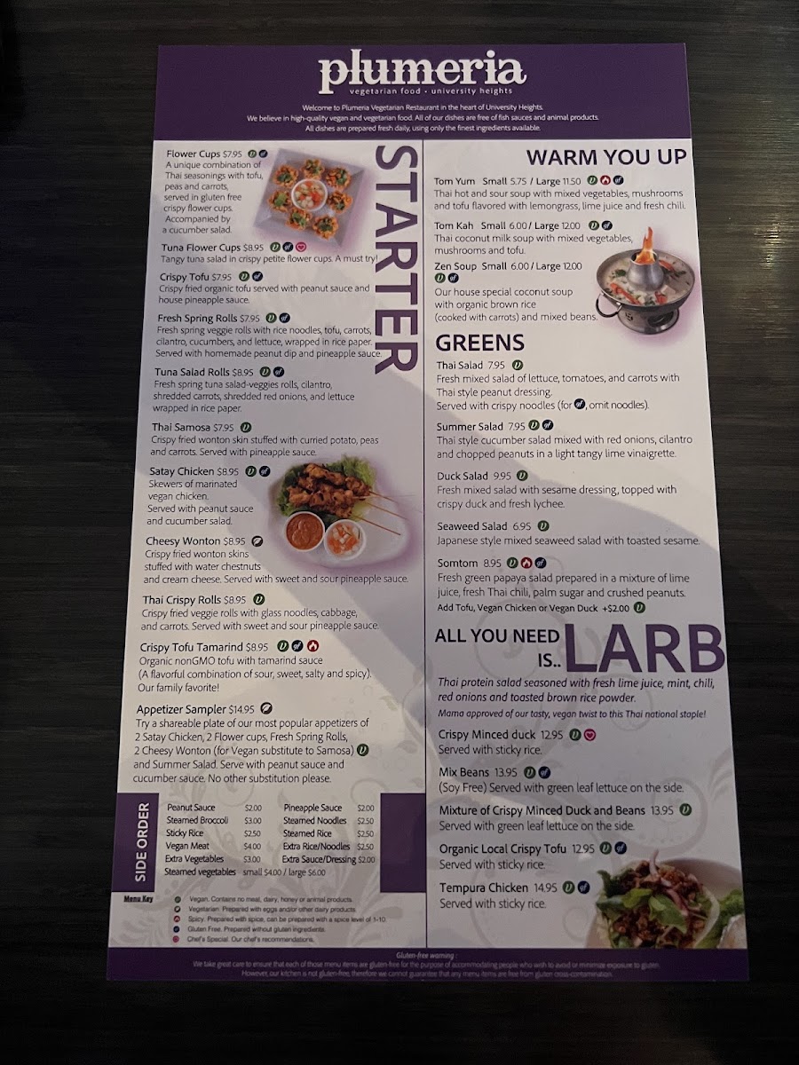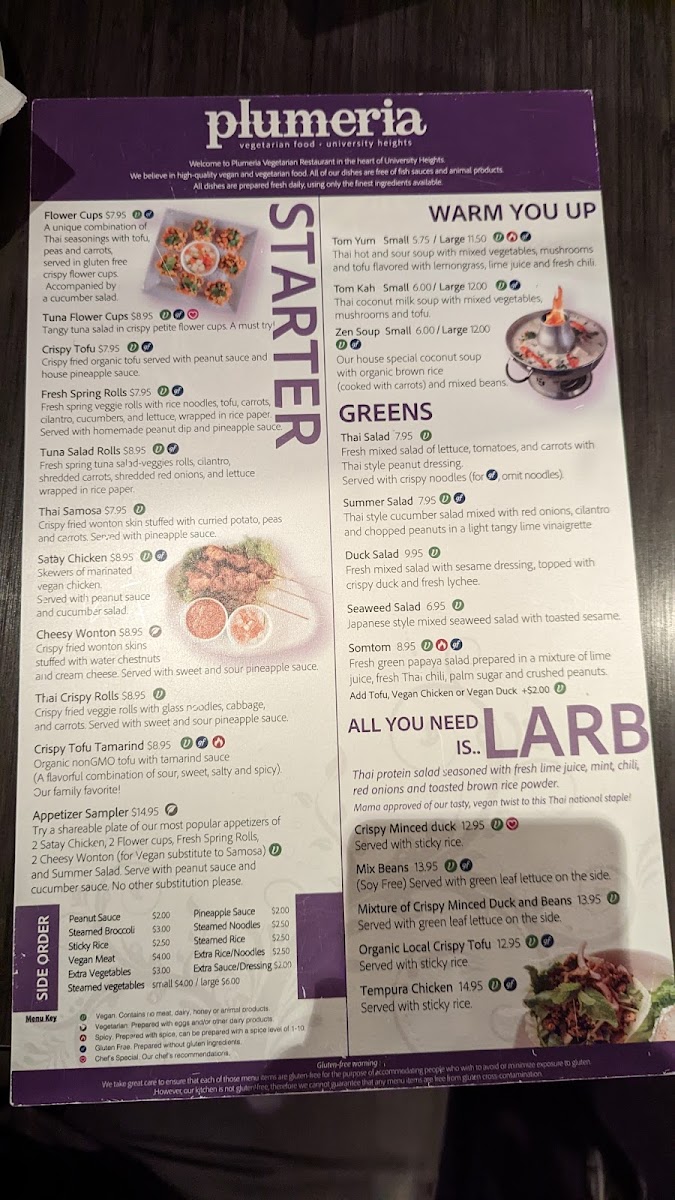 At Plumeria Vegetarian Restaurant Menu, you'll find a delightful mix of fresh, flavorful, and wholesome plant-based dishes that are perfect for anyone looking to enjoy vibrant, nutritious meals. Located at 4661 Park Blvd, San Diego, CA, this cozy spot is all about bringing together the best of vegetarian cuisine in a way that's both satisfying and nourishing. Whether you're a long-time vegetarian or just exploring meat-free options, the menu offers something for everyone. From savory bowls and wraps to unique appetizers, everything is crafted with care, using the freshest ingredients available. You can expect to enjoy dishes that not only taste great but also make you feel good. It’s the perfect place to unwind, whether you're grabbing a quick bite or sitting down for a relaxed meal with friends.